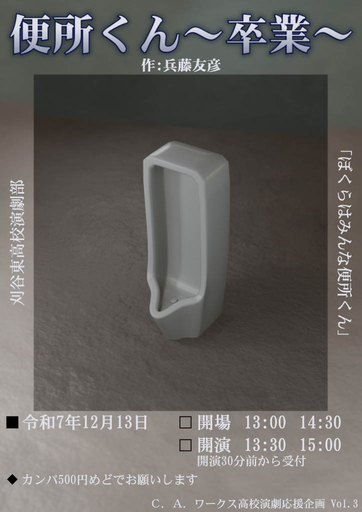 今回は愛知県立刈谷東高校演劇部が「便所くん~卒業~」を演じてくれます。ぜひ観にきてください。